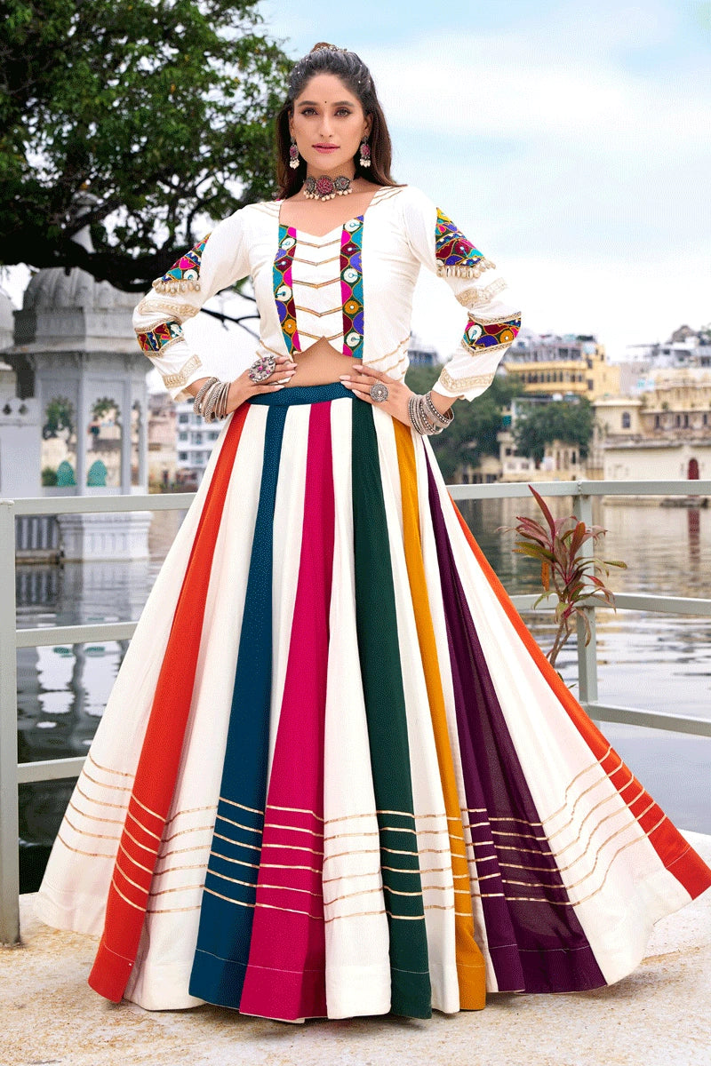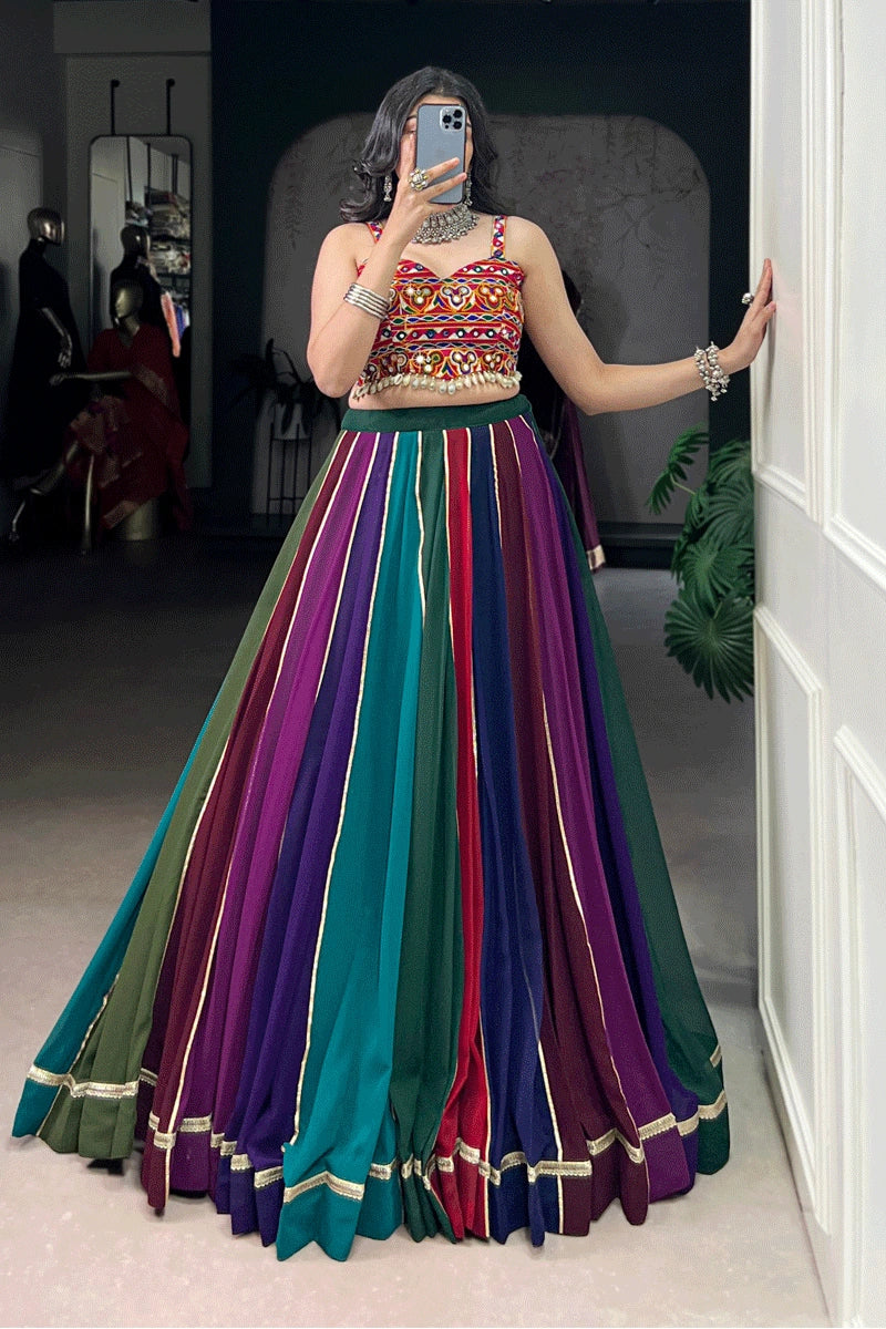Full Slevees Fully Stitched Multicolor Lehenga Choli For Garba
