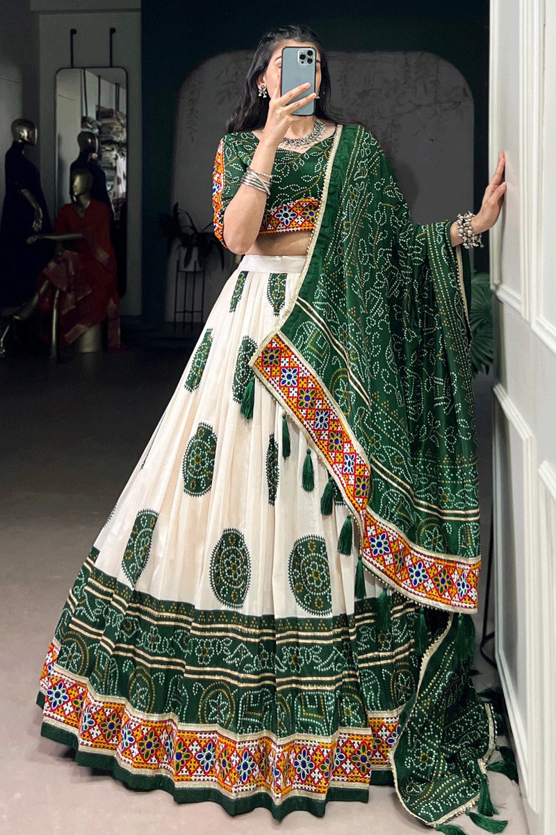 Gujarati Style Green Color Chaniya Choli For Navratri