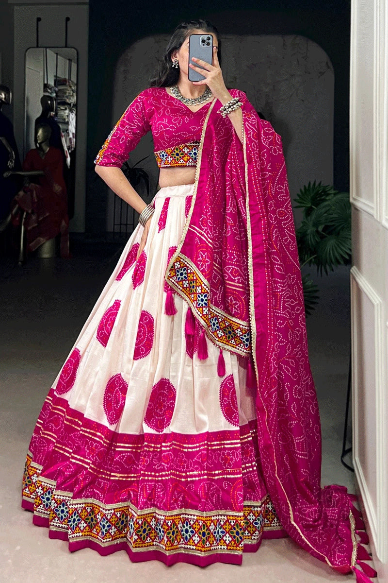 Pink Color Gujarati Style Bandhani Print Ghagra Choli For Women