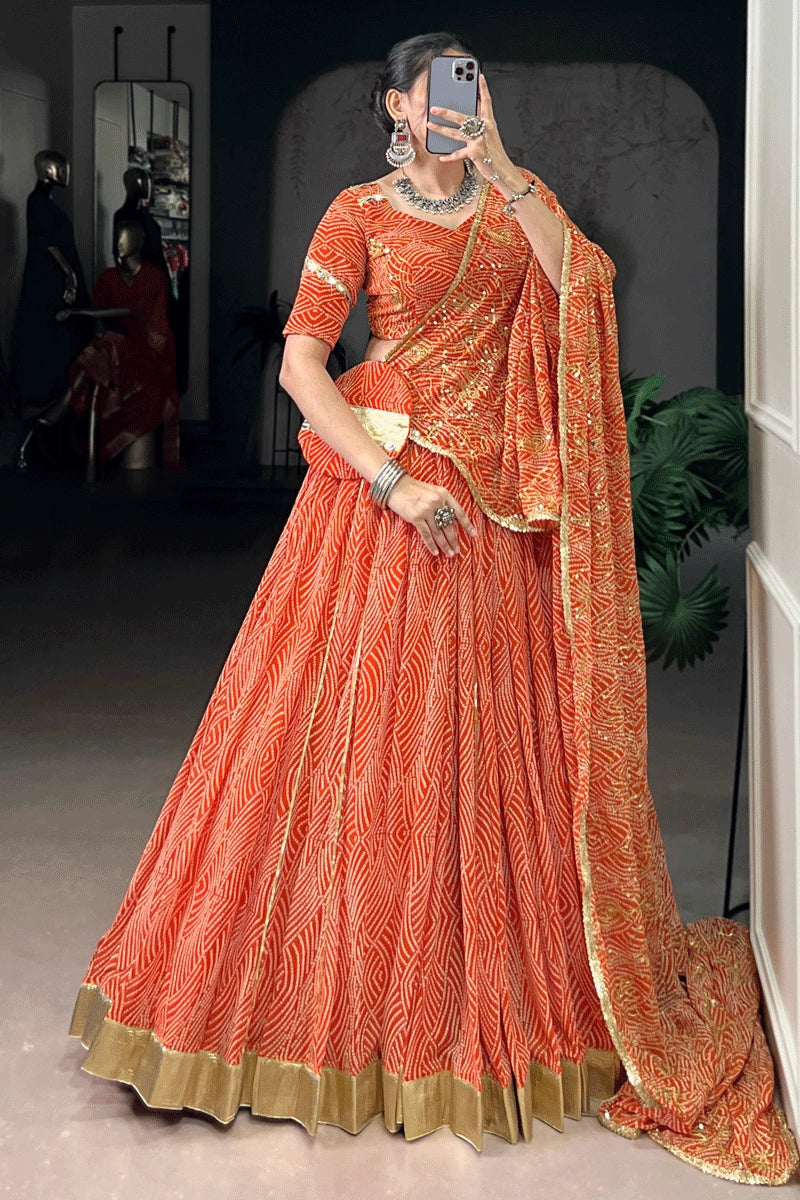 Red Color Fully Stitched Bandhani Print Lehenga Choli For Women From Anaya Designer Studio LEHENGA...