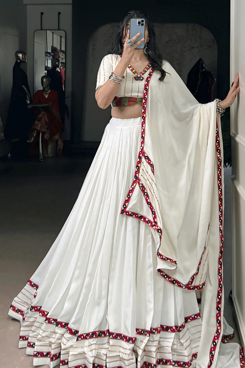 Traditional Gujarati Style Real Mirror Work Chaniya Choli For Garba Night