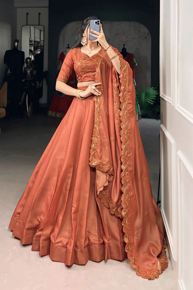 Beautiful Sangeet Wear Orange Color Lehenga Choli