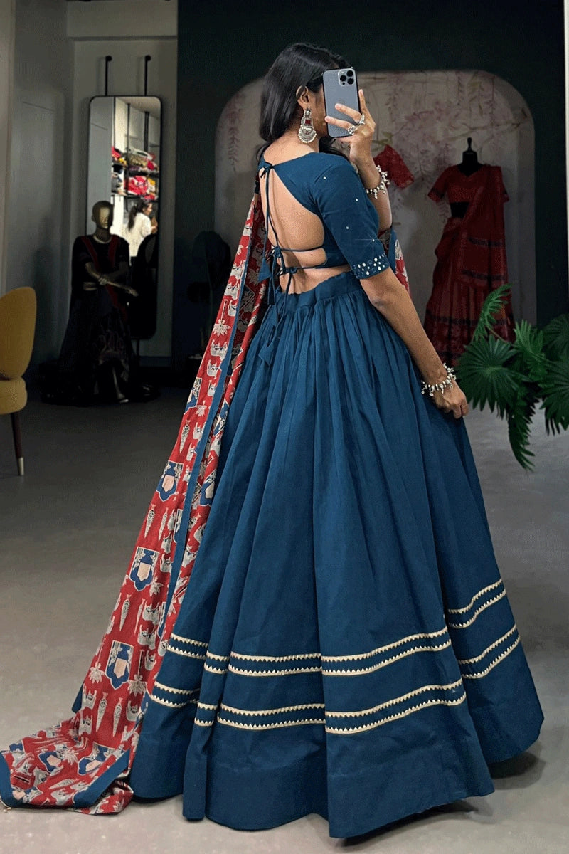 Fully Stitched Sky Blue Color Lehenga Choli For Wedding Guest