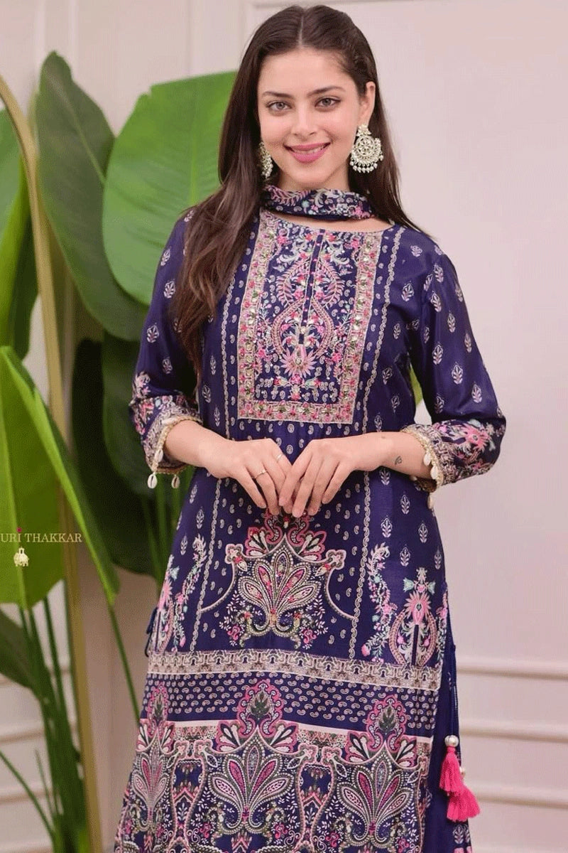 Embroidery Work Blue Color Sharara Suit For Wedding