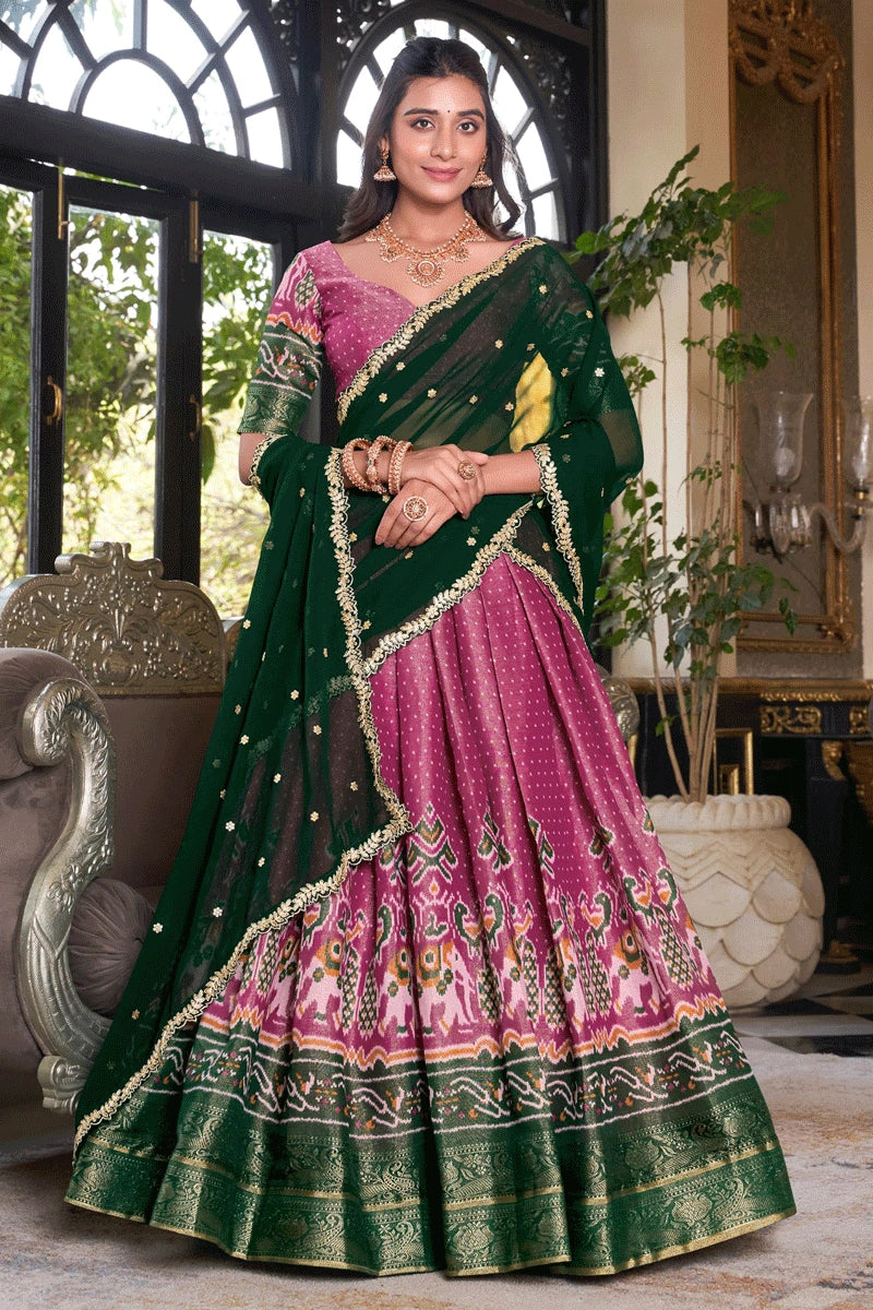 Pure Chanderi Mehendi Color Lehenga For Bridal
