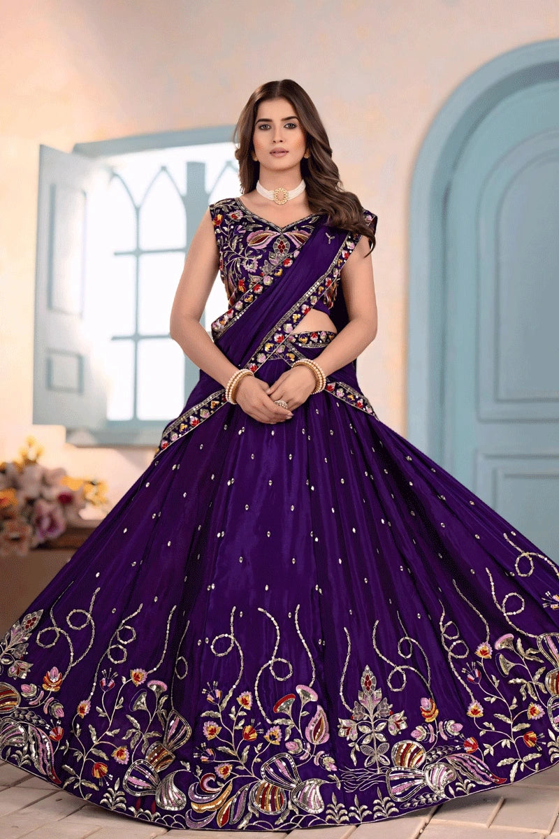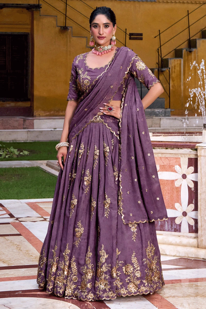 Purple Color Embroidery Work Lehenga Choli For Wedding