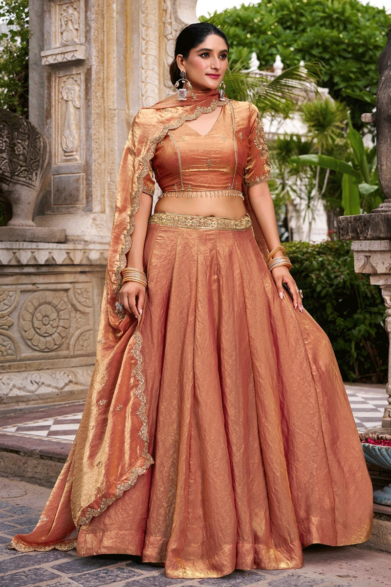 Traditional Look In Orange Color Lehenga Choli For Wedding