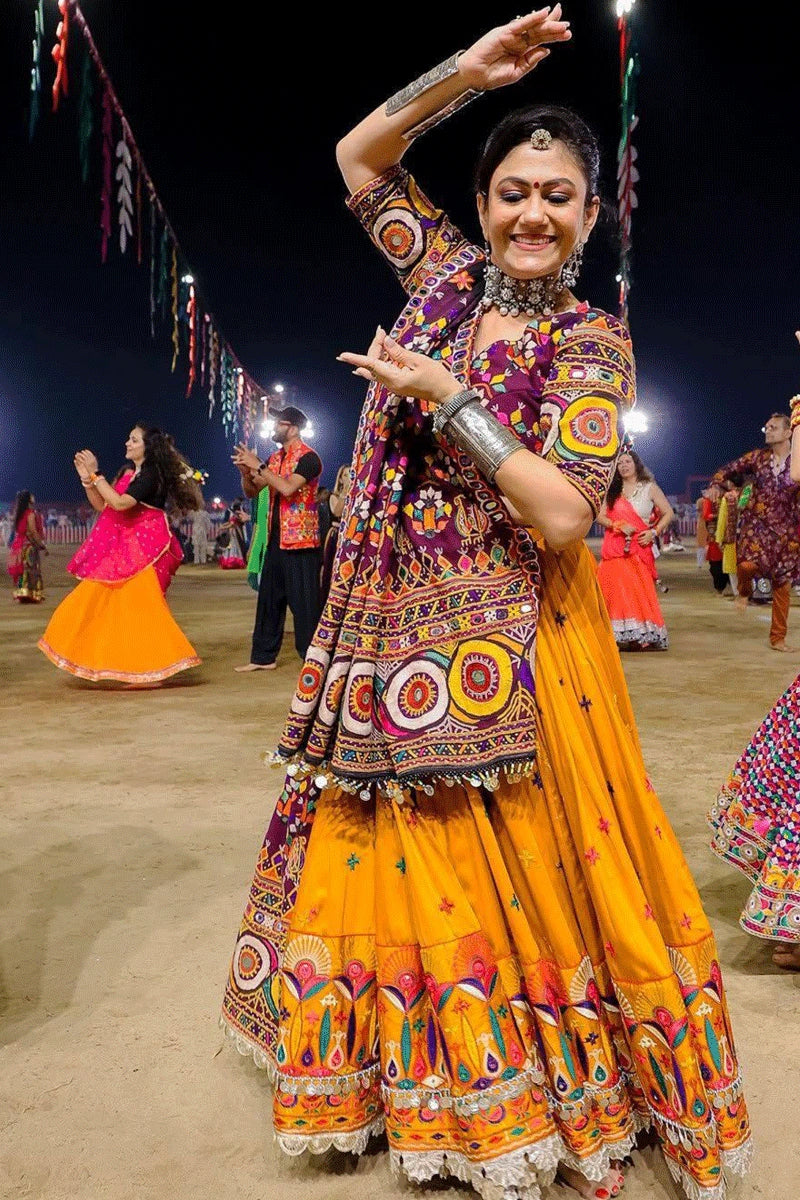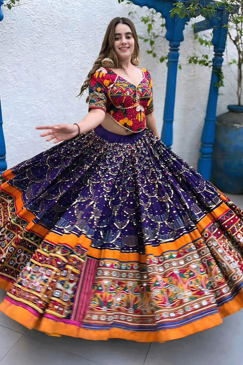 Gujarati Style Real Mirror Work Chaniya Choli For Garba