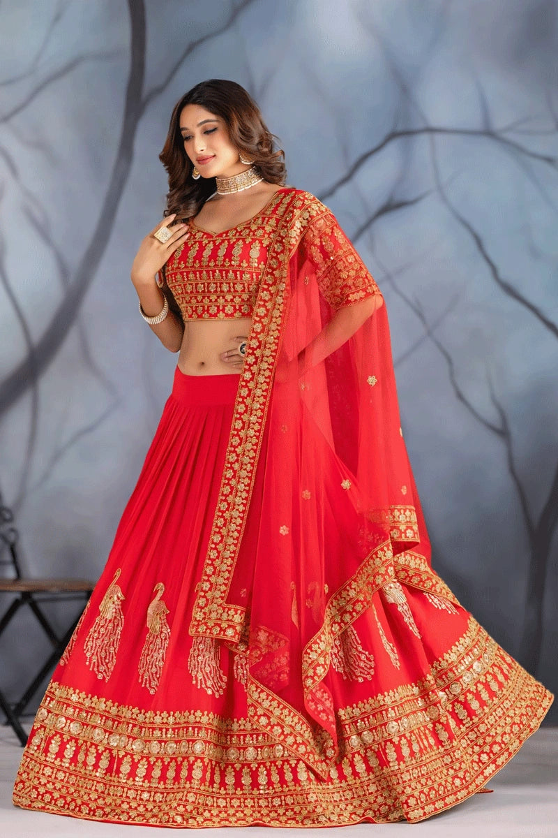 Red Color Georgette Long Sleeves Sharara Suit For Wedding Guest From Anaya Designer Studio Product...