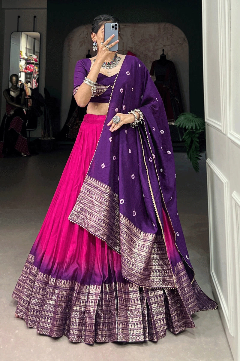 Ready To Wear Purple Lehenga Saree For Girl From Anaya Designer Studio Inner: Micro CottonFlair:...