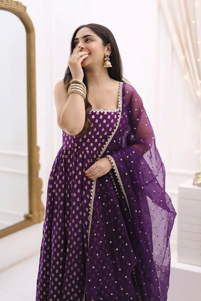 Heavy Flair Georgette Anarkali Gown For Wedding Guest