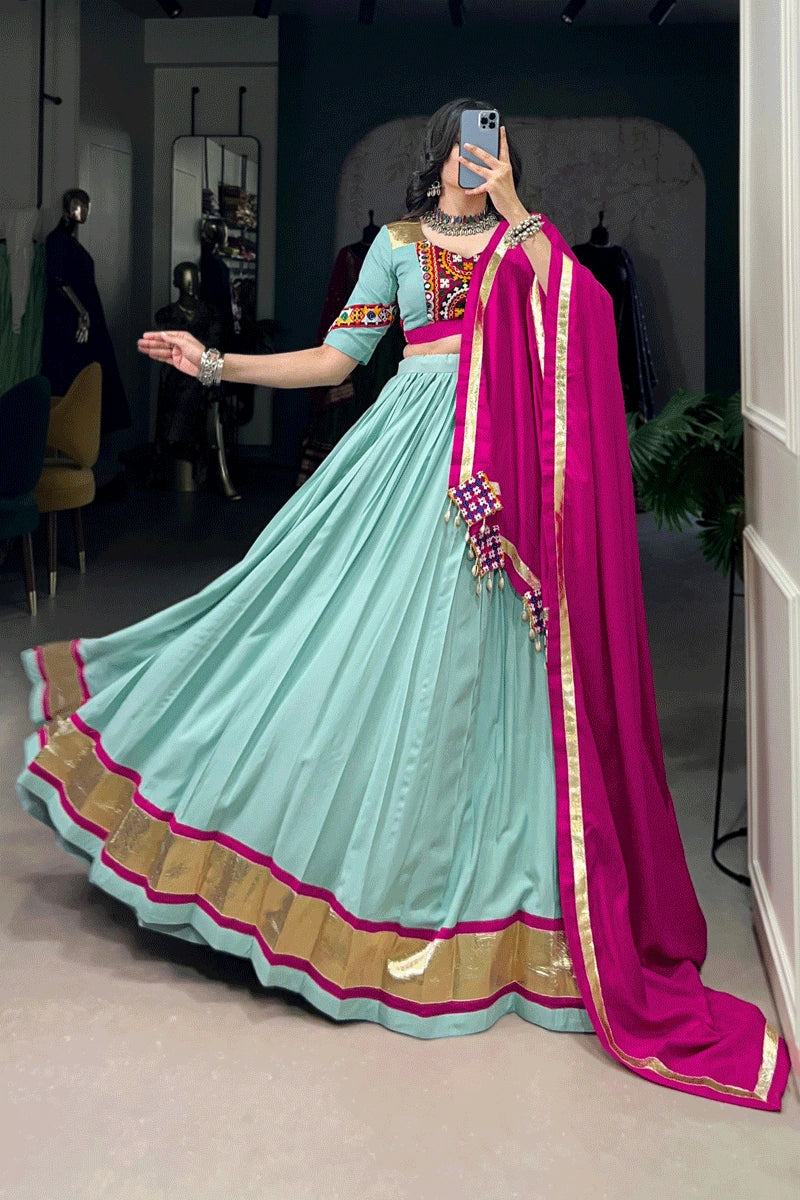 Onam Special Teal Color Pavadai Davani for Girl From Anaya Designer Studio Lehenga (Stitched)Lehenga Fabric:...