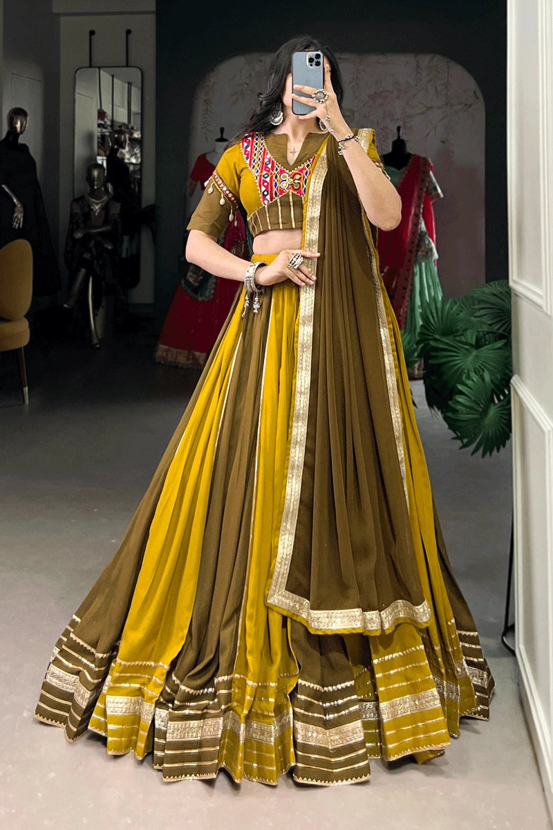 Fully Stitched Brown Hand Work Lehenga Choli For Sister Mehendi From Anaya Designer Studio Lehenga...