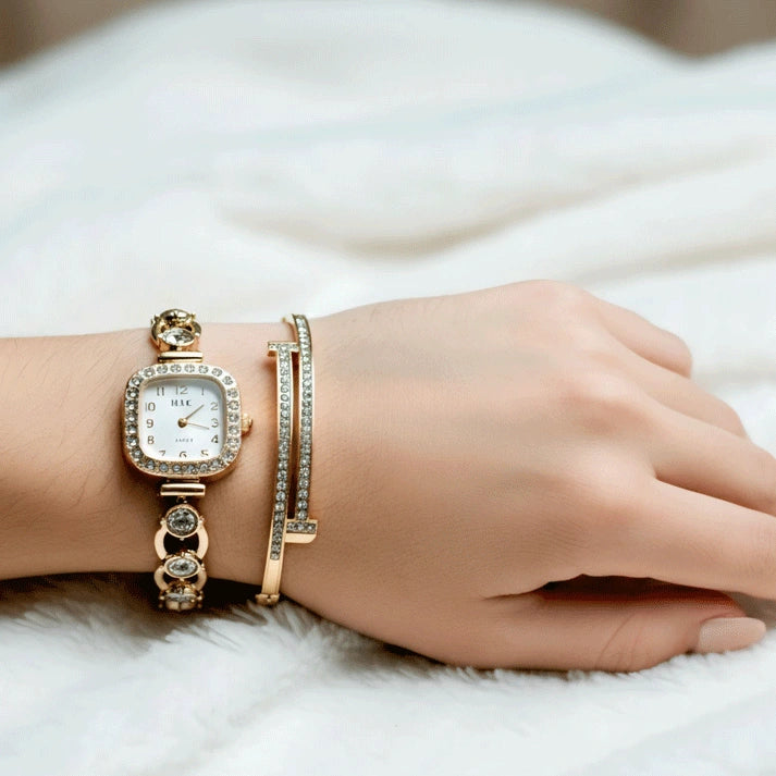 Rose Gold Watch & Diamond Bracelet Set From Anaya Designer Studio Style: Elegant combo set...