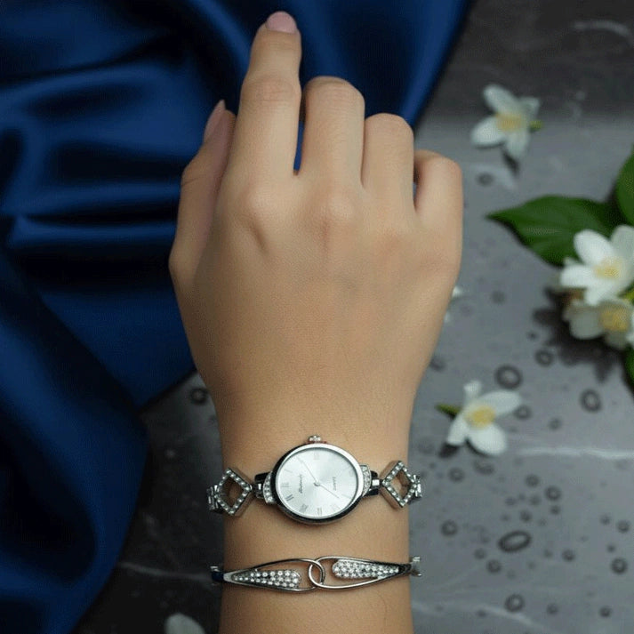 Stylish Silver Diamond Watch & Bracelet Set From Anaya Designer Studio Style: Modern and elegant...