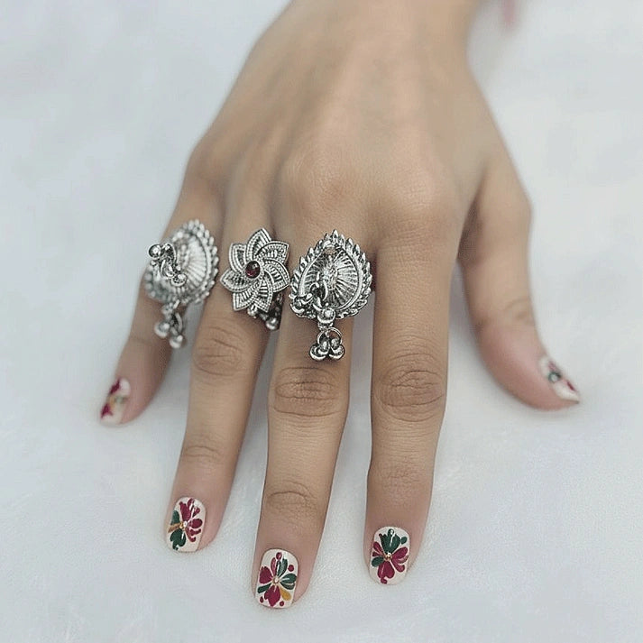 Trendy Oxidised Peacock Design Ring From Anaya Design Studio Style: Traditional oxidised ring Design: Elegant...