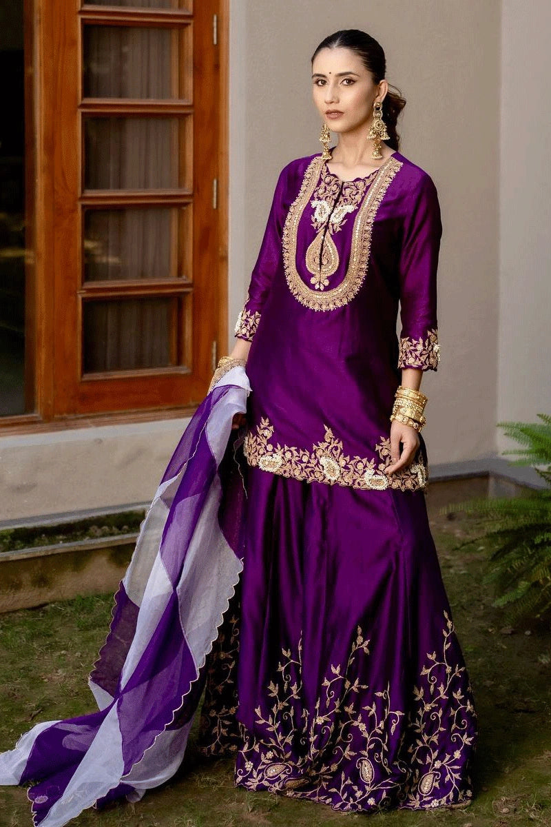 Party Wear Sharara Suit With Short Kurti For Wedding