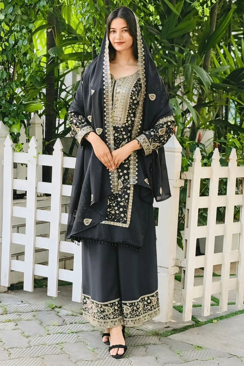 New Traditional Outfits For Eid Festival Pakistani Black Sharara Suit For Eid Product Description Of...