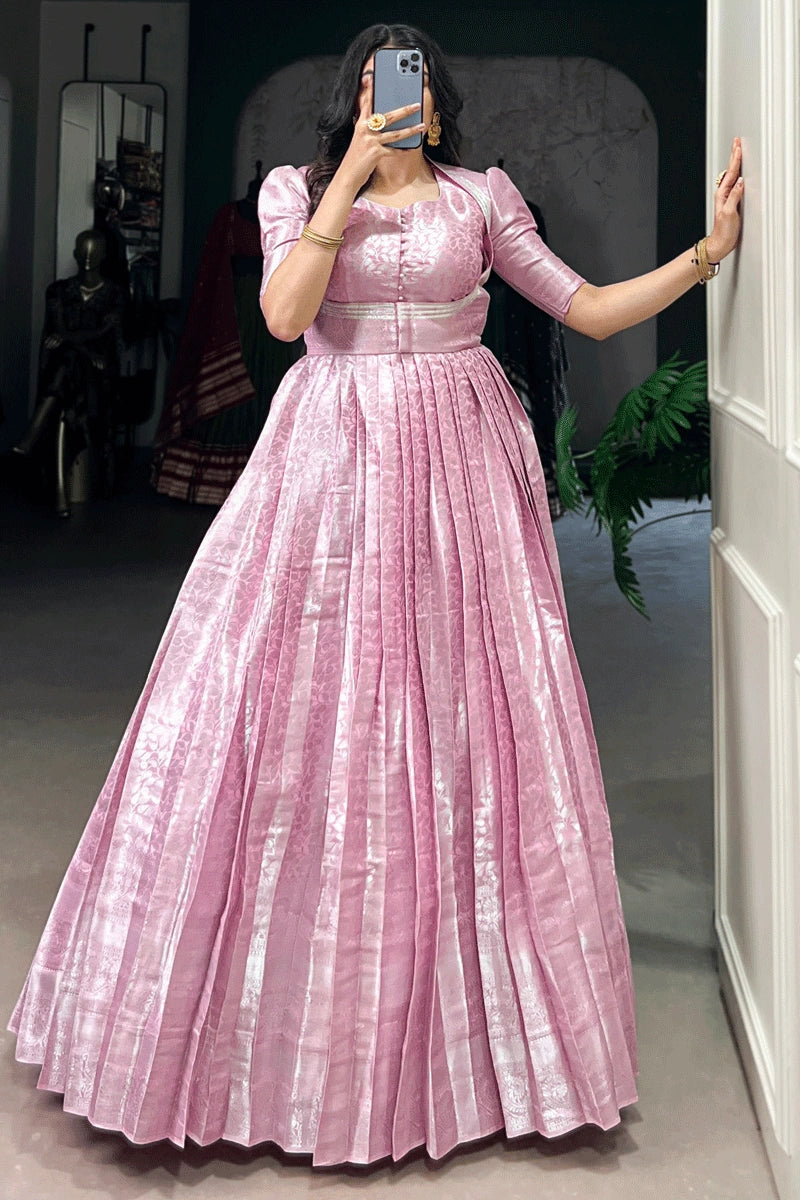 Kanjivaram Long Party Wear Gown With Koti For Girls