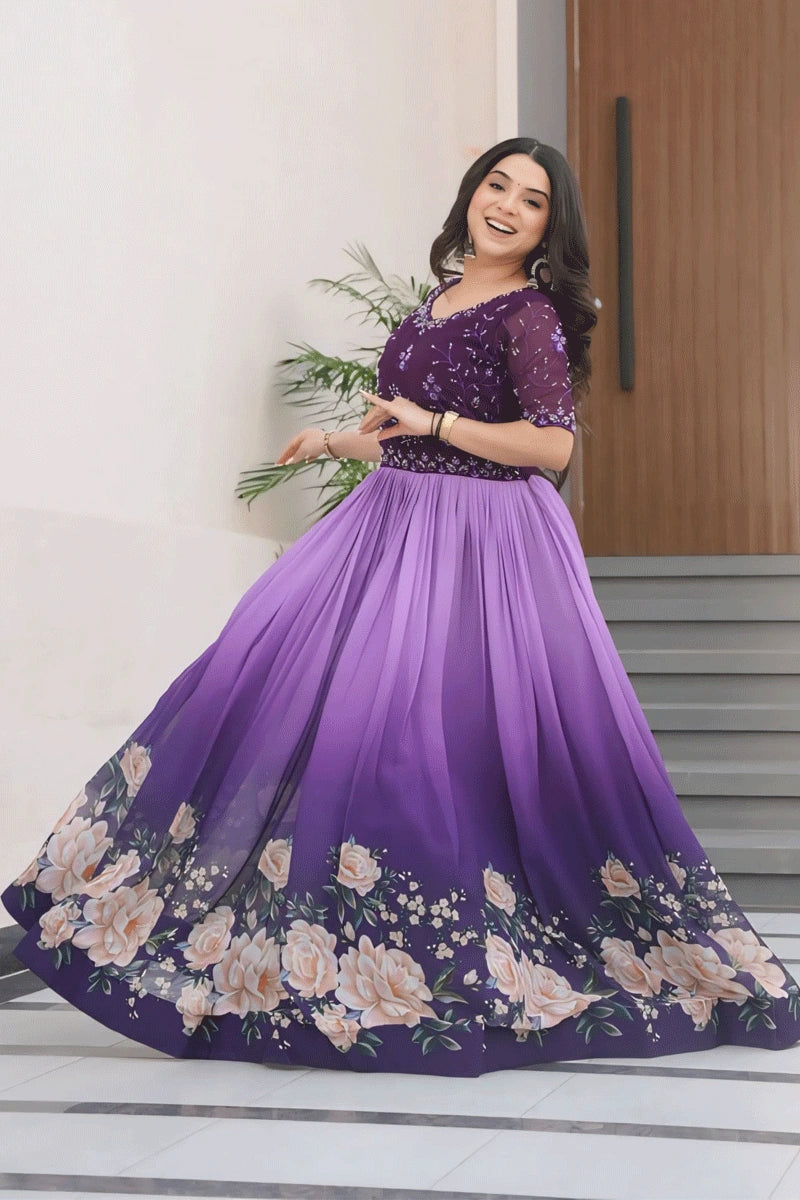 Purple Color Sequins Embroidery Work Anarkali Gown For Gen Z Girl