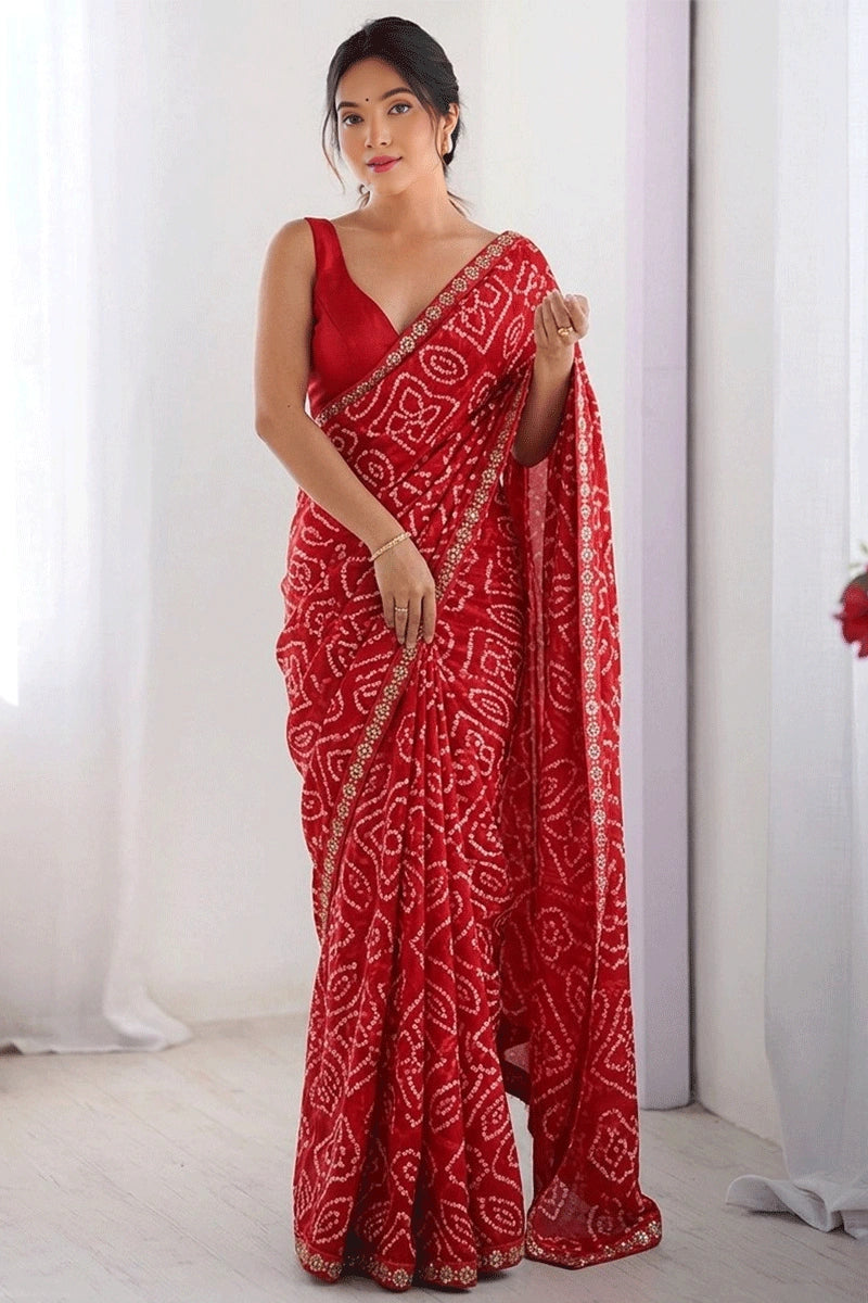 Pooja Special Bandhani Print Saree For Women