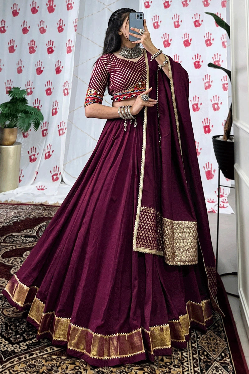 Fully Stitched Purple Color Heavy Flair Ghagra Choli For Navratri