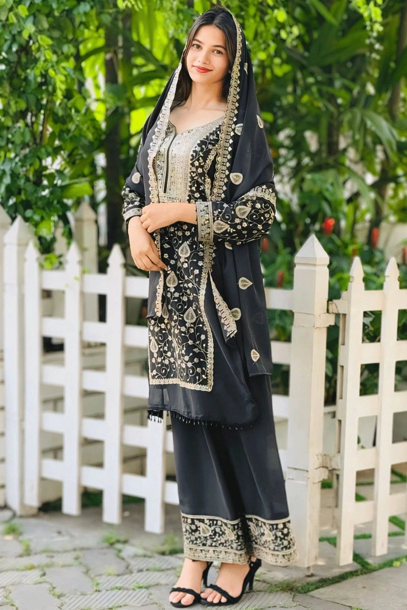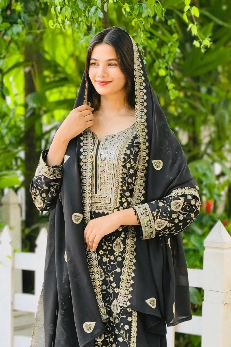 New Traditional All Black Georgette Sharara Suit For Wedding From Anaya Designer Studio
