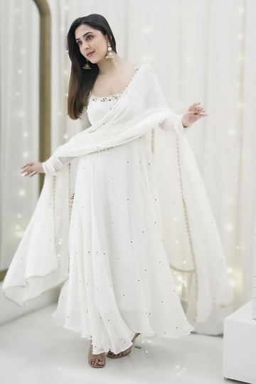 Anarkali White Long Gown For Reception Party
