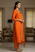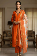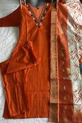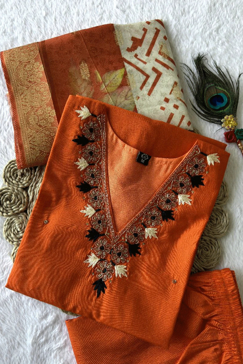 Beautiful Hand Work Orange Color Kurti Set For Girl
