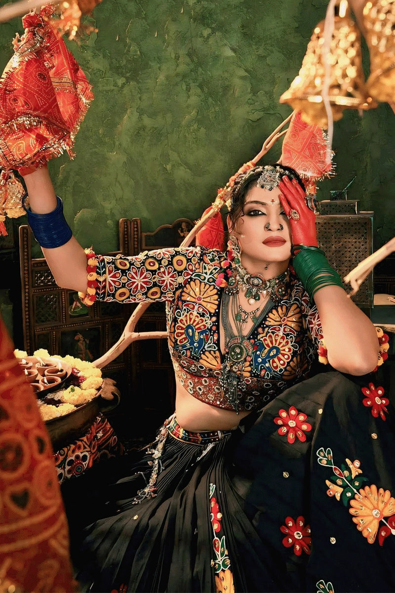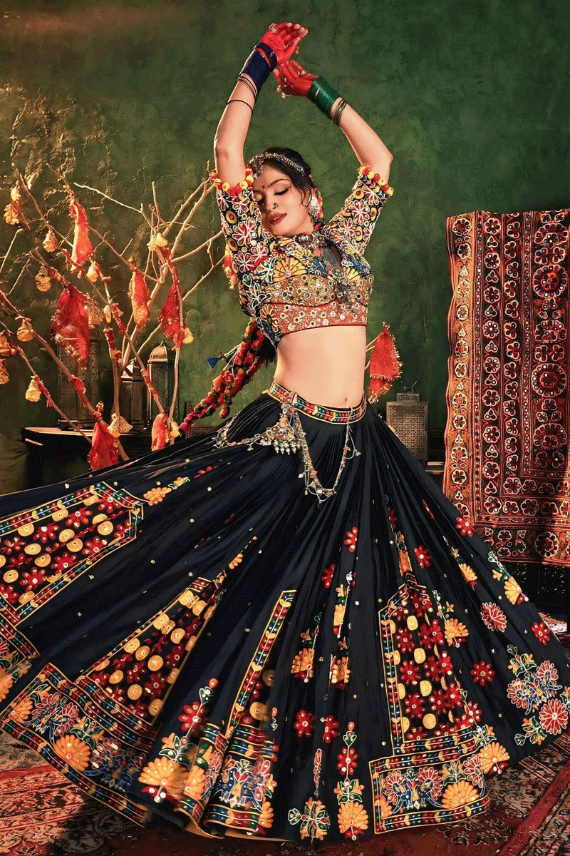 Black Color Real Mirror Work Lehenga Choli For Navratri From Anaya Designer studio