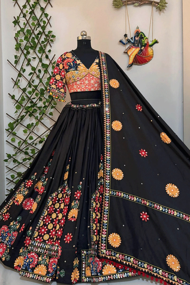 Black Color Real Mirror Work Lehenga Choli For Navratri