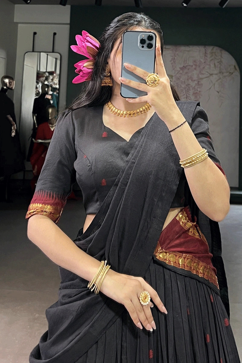 Black Color South Indian Style Half Saree For Girl From Anaya Designer Studio