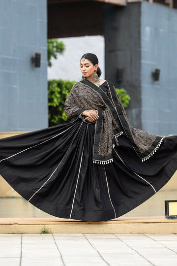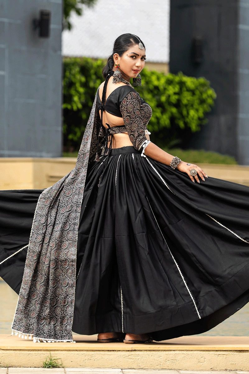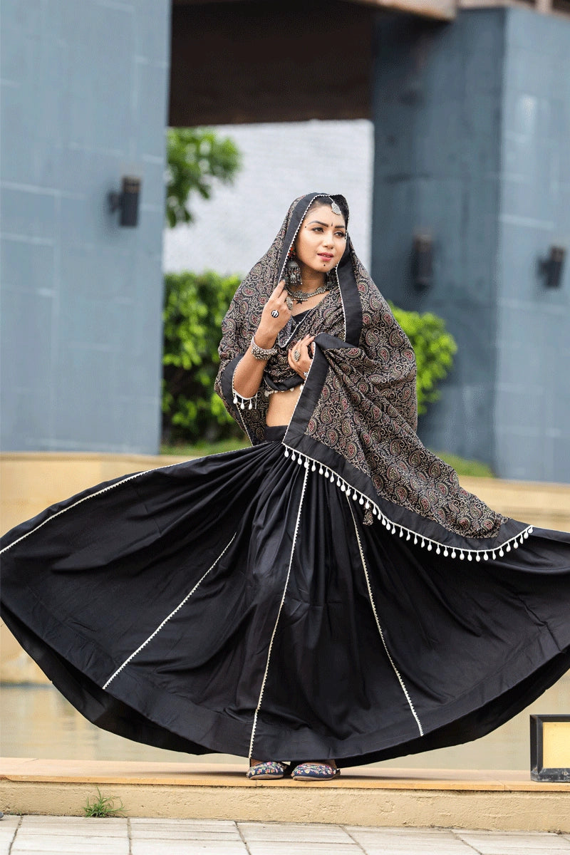 Black Colour Pure Cotton Lehenga Choli For Navratri