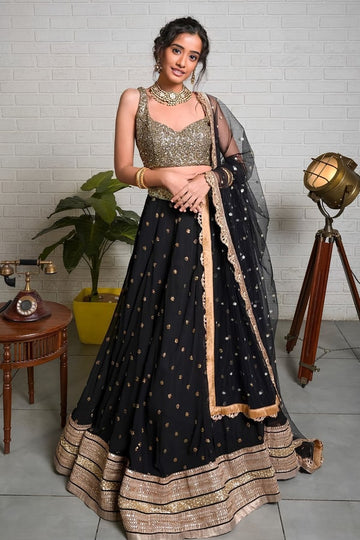 Black Sequin Lehenga Details:- Fabric: Georgette