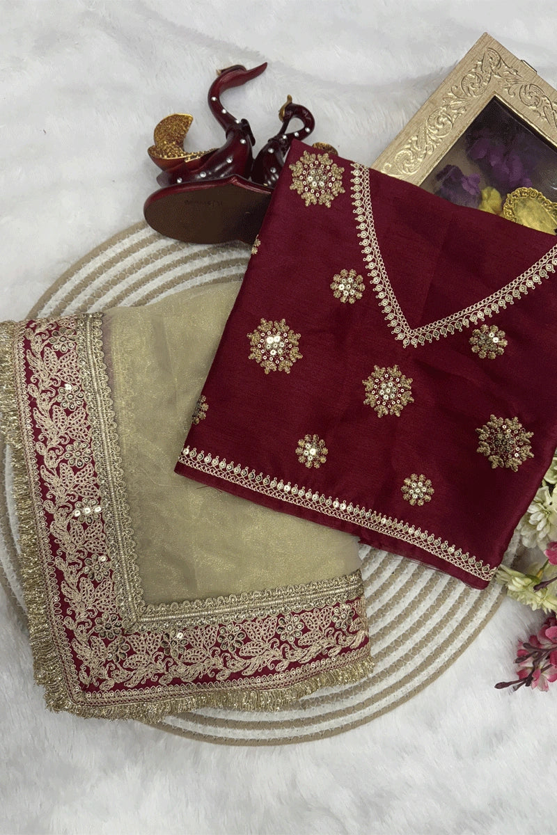 • Work: Beautiful Sequins and Dori Embroidery Work with Fancy Lace Border