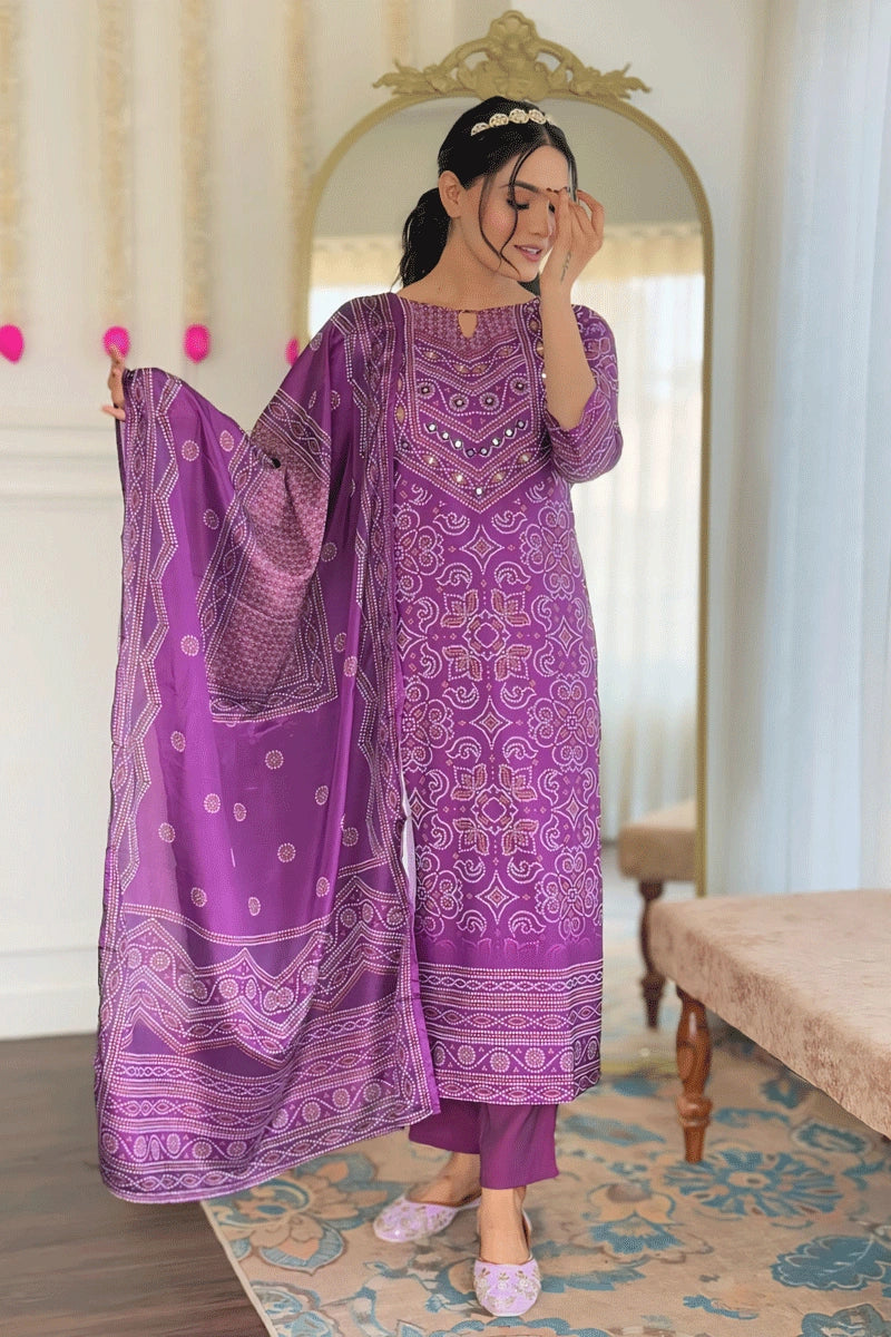 New Arrival Buy Purple Designer Bandhani Print Kurti 2025 From Anaya Designer Studio