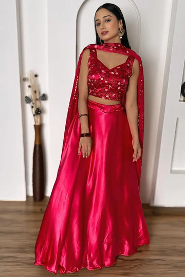 Buy Silk Red Lehenga with Stylish Blouse for Navratri