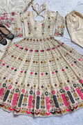 Cream Color Anarkali Long Gown With Dupatta For Wedding