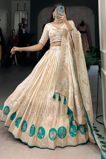 Product Description Of Cream Color Jacquard Lehenga For Wedding: