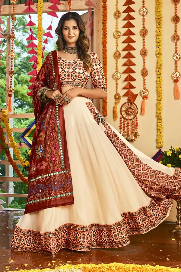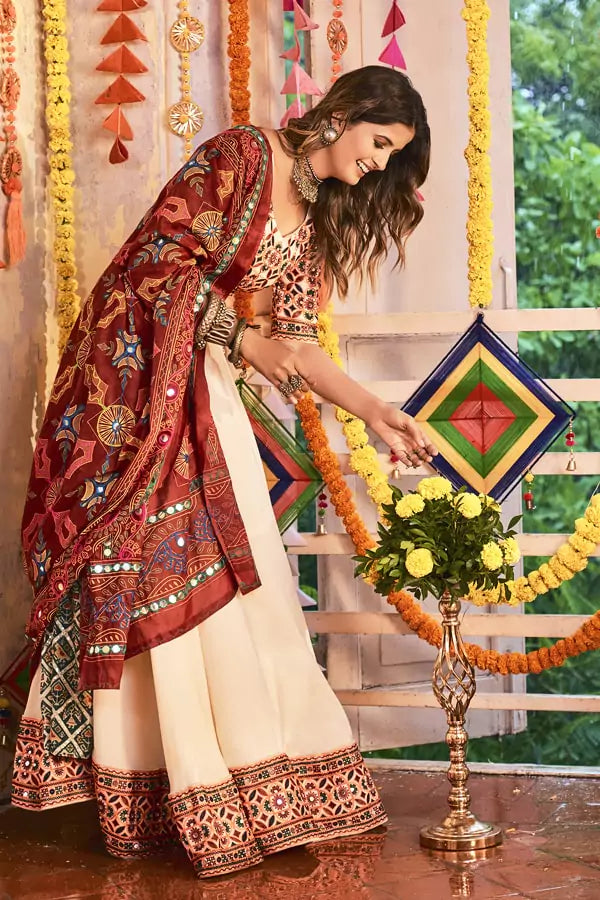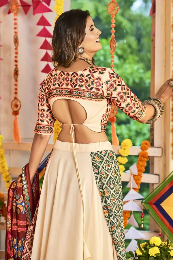 These Chaniya Cholis are specifically designed for Navratri and reflect the traditional Gujarati style. You can find a variety of fabrics, including cotton, which is popular for its comfort and breathability during the energetic Garba dance.