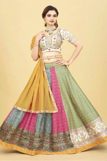 Get ready to set the dance floor on fire with our Navratri Special Multicolor Digital Print Chaniya Choli! Designed specifically for the vibrant celebrations of Garba dance, this ensemble is a perfect blend of tradition and style. The chaniya choli features a mesmerizing multicolor digital print that will make you stand out in the crowd.