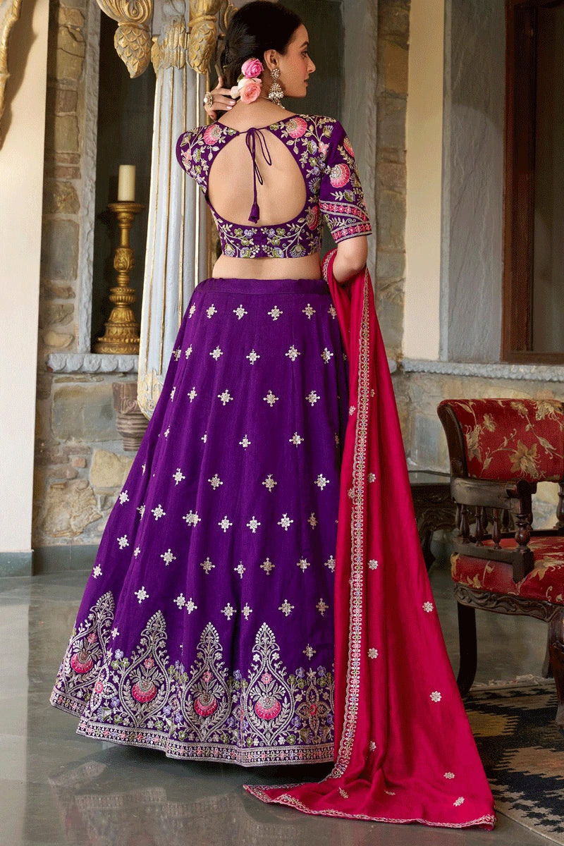 Product Description Of Designer Purple Color Silk Lehenga For Wedding: