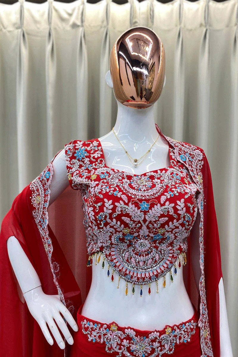 Designer Red Crop Top Lehenga For Brother Wedding Barat