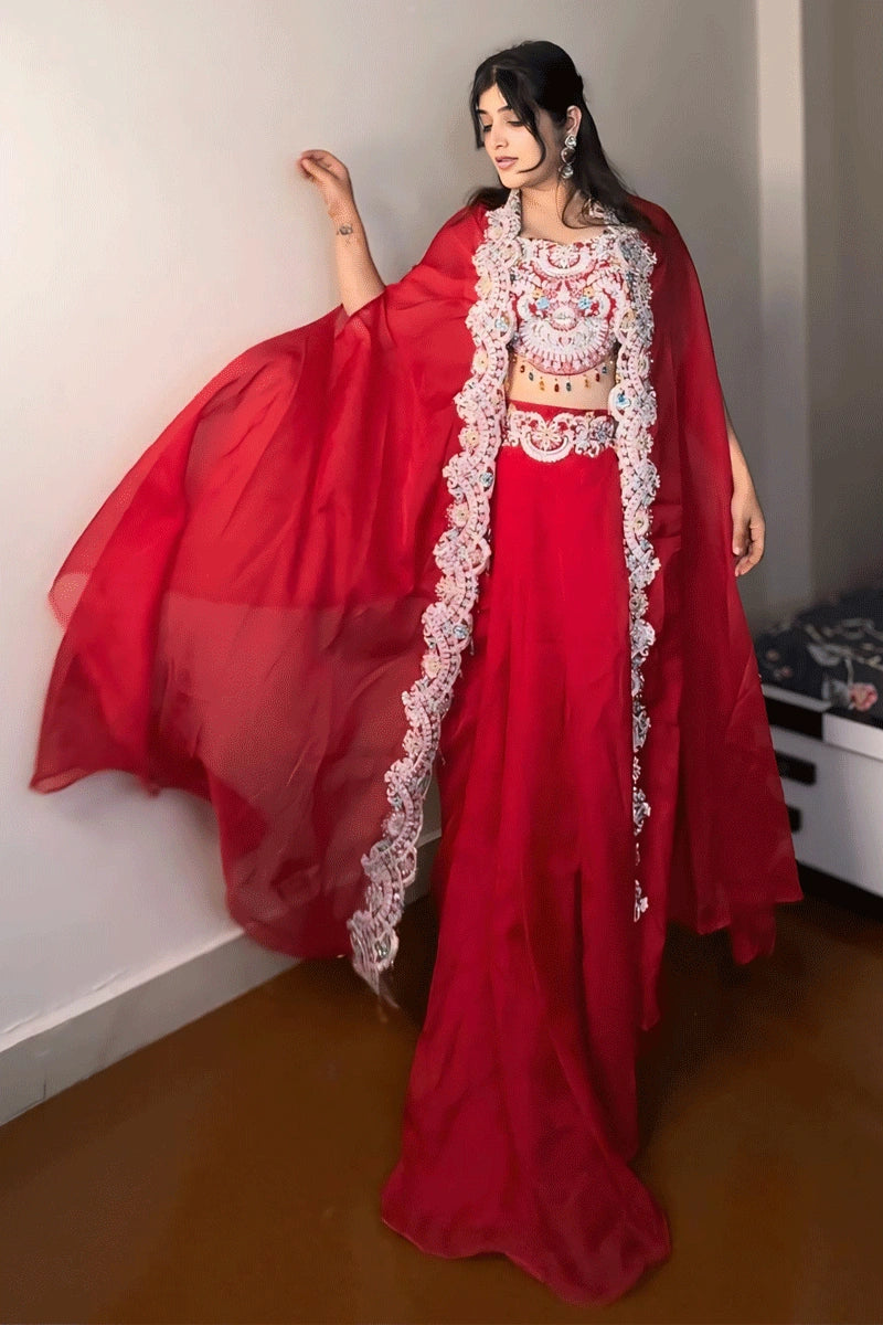 New Designer Red Crop Top Lehenga For Brother Wedding Barat From Anaya Designer Studio