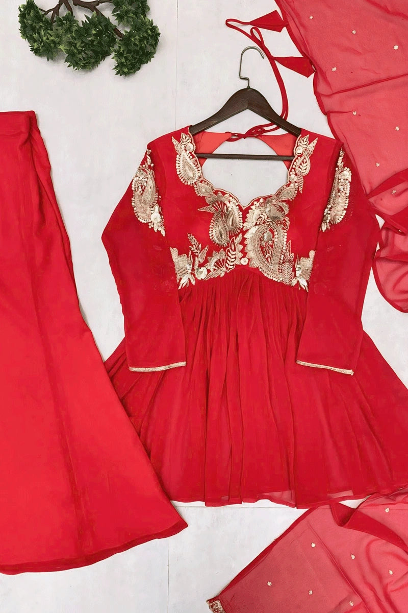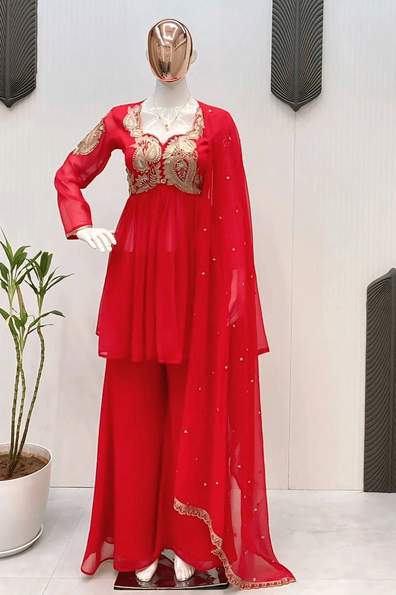 Designer Red Sharara Suit For Karwa Chauth Festival
