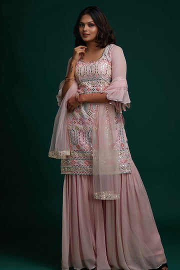 New Arrival Latest Designer Sharara Suit With Short Kurti Which Made With Georgette Fabric And Heavy Embroidery Work Design 2022.