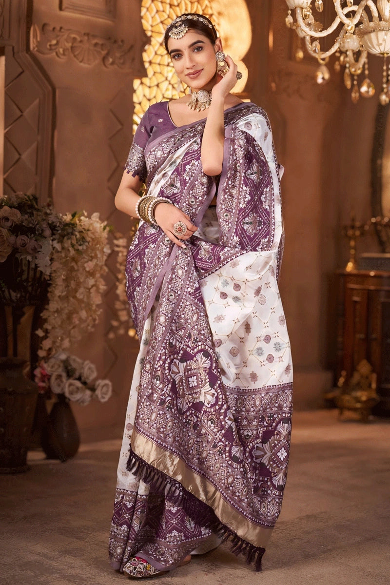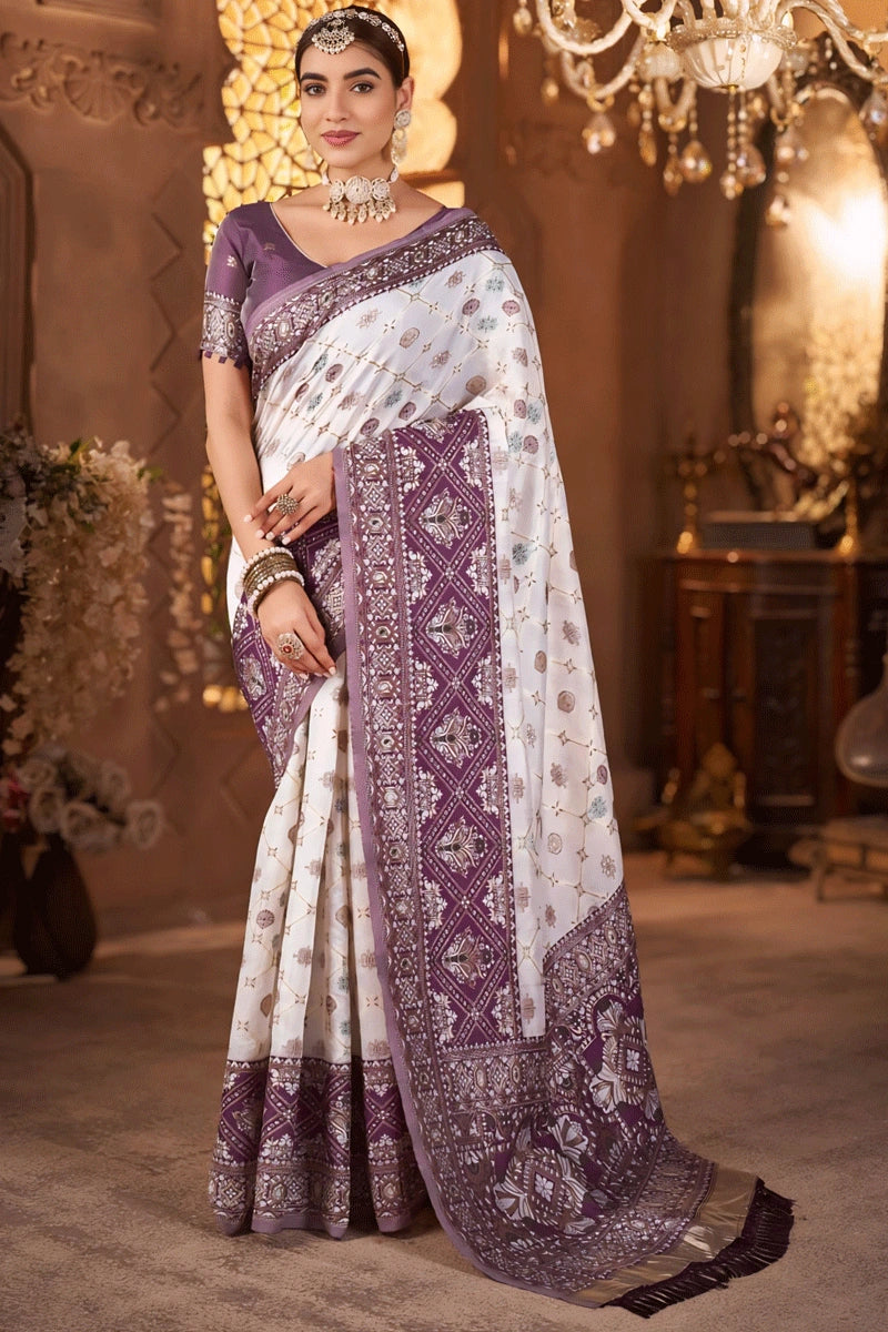 Designer Silk White Color Saree For Wedding