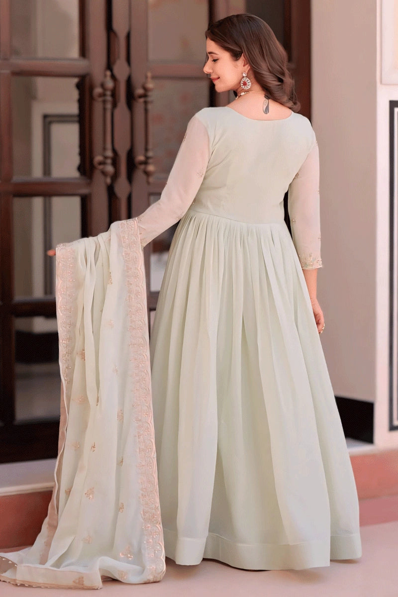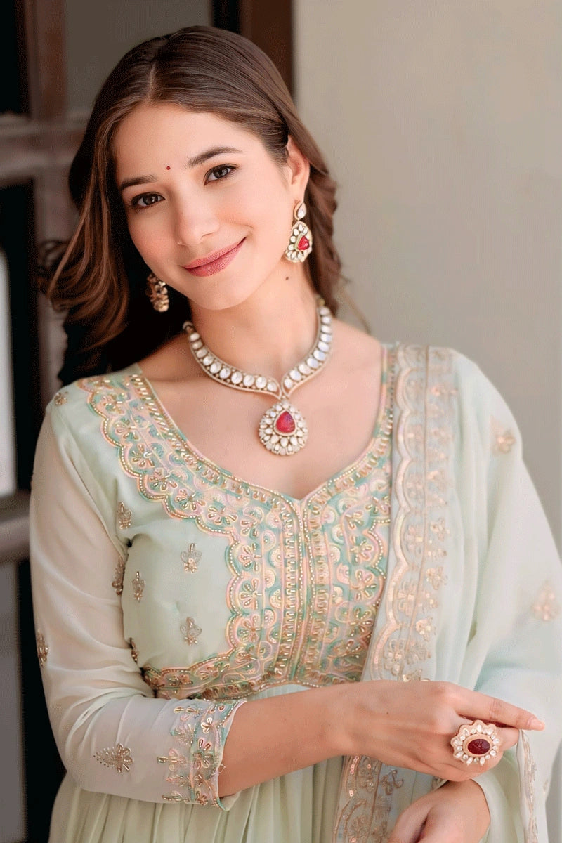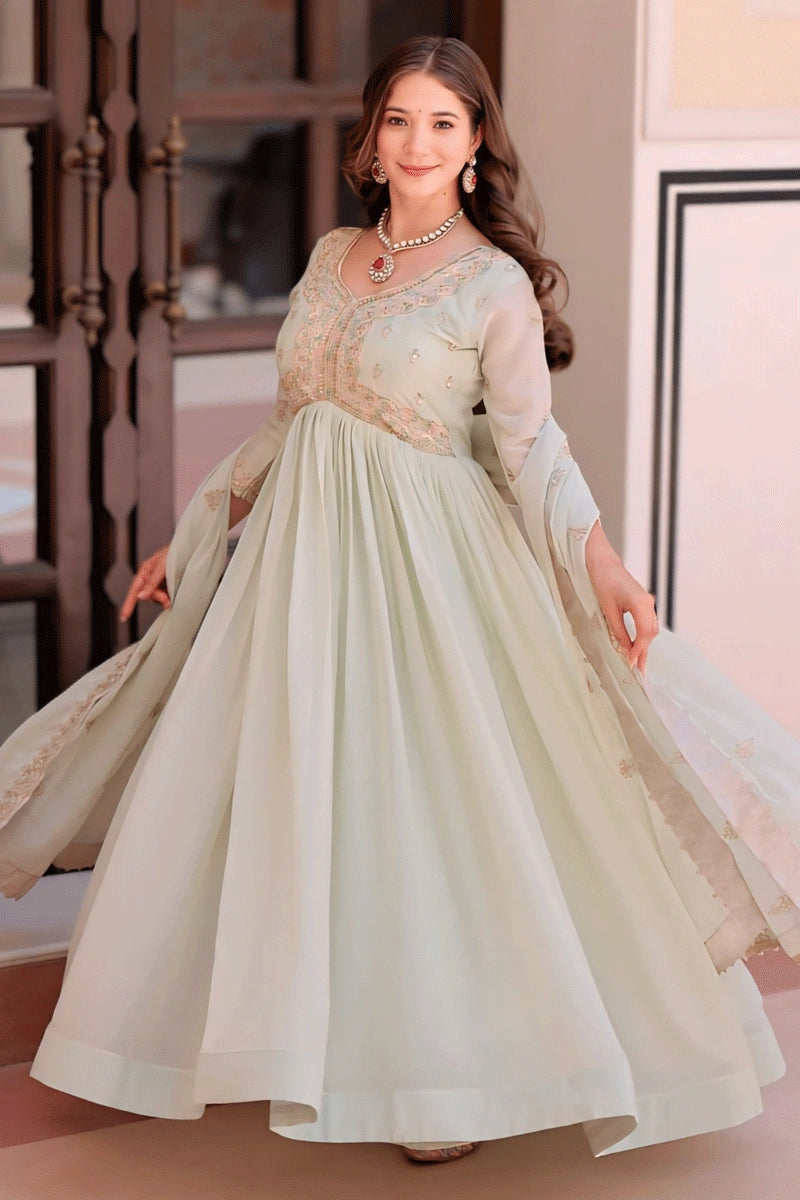 Diwali Special Pista Color Long Gown For Girl From Anaya Designer Studio