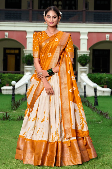 Double Colour Silk Fabric Half Saree For Onam Festival