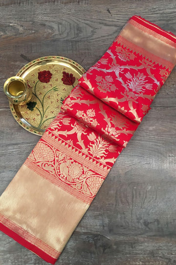 Durga Puja Special Red Saree Online Shopping - Anaya Designer Studio
